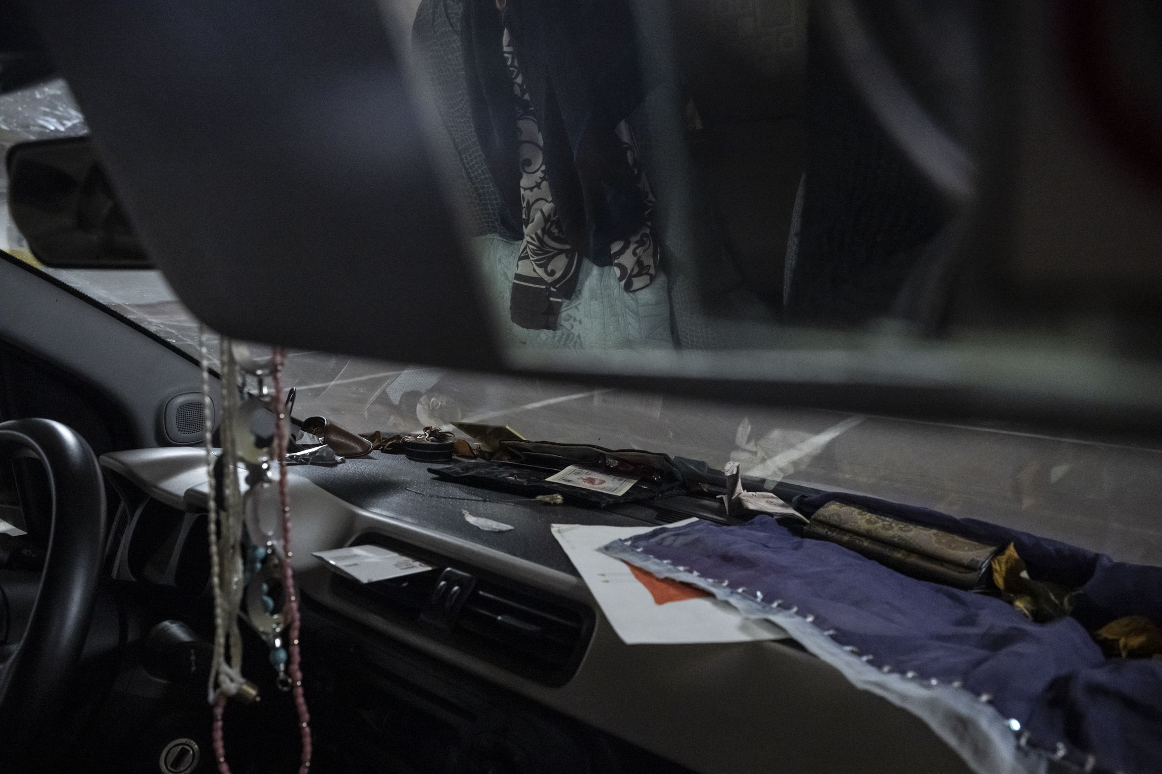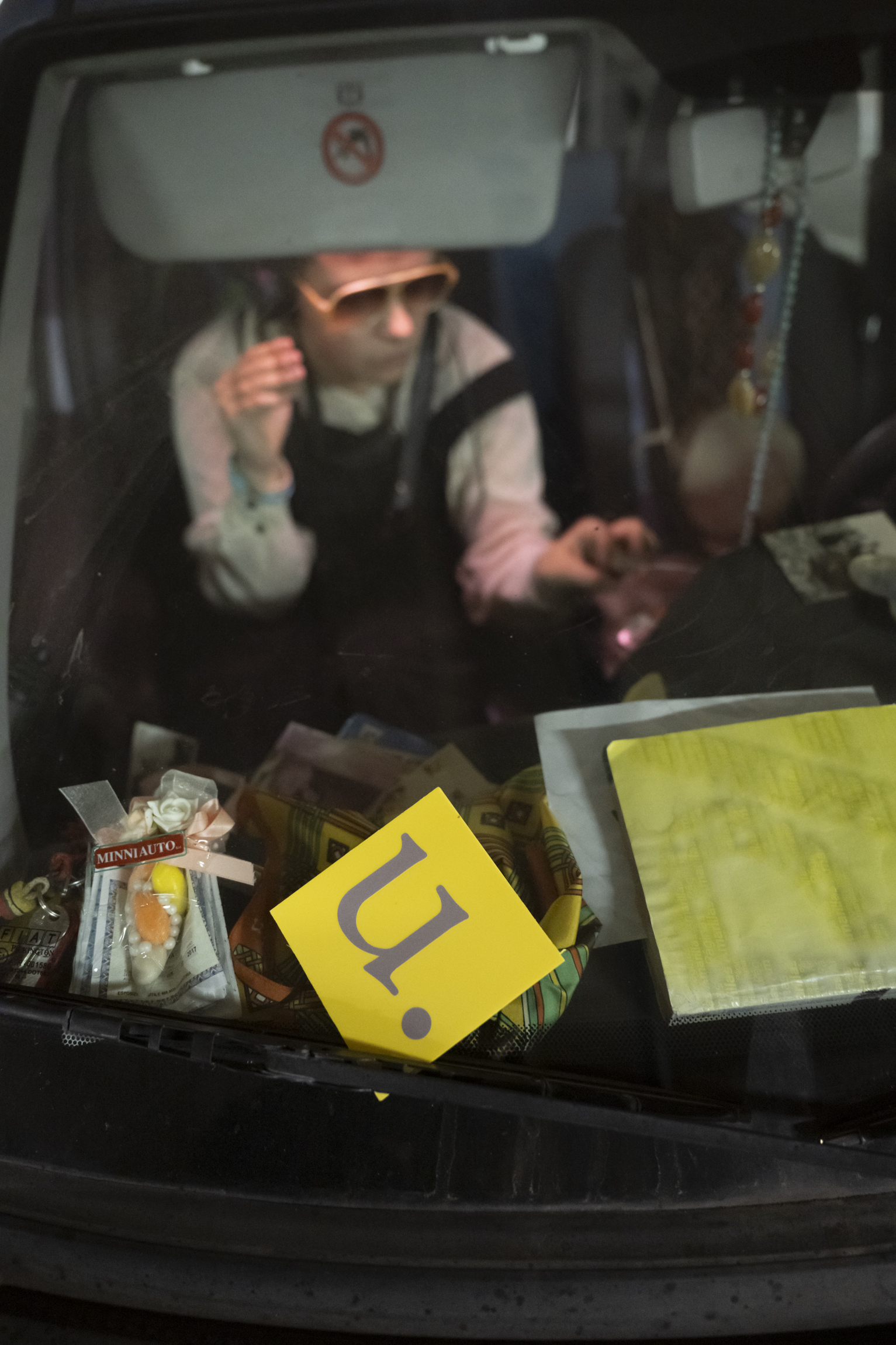 inside the car of a dead person we are guided to perceive ourselves aging;